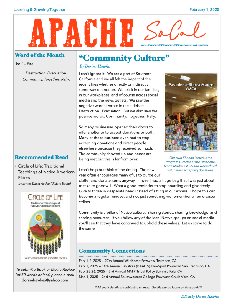 Community is a pillar of Native culture. Sharing stories, sharing knowledge, and sharing resources. If you follow any of the local Native groups on social media you’ll see that they have continued to uphold these values. Let us strive to do the same.